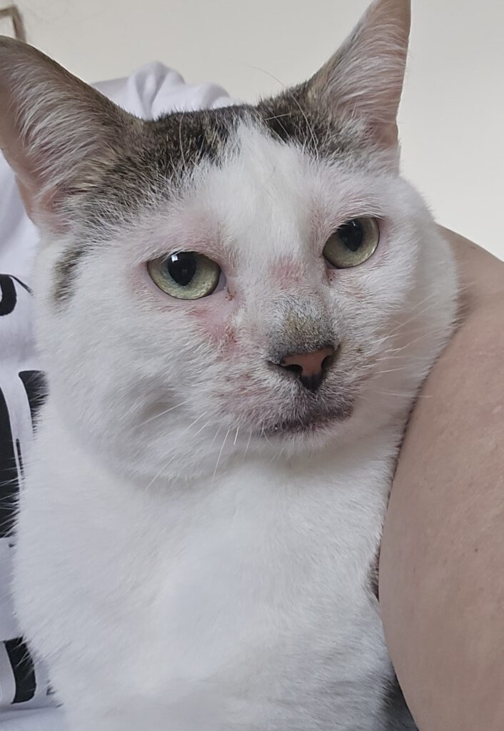 Gleich vier neue Schützlinge haben wir im Februar aufgenommen. Zu Beginn des Monats zog der rot-weiße Eddy bei uns ein. 🐈 Viele Jahre hat er auf der Straße gelebt, heute ist er etwa 10–12 Jahre alt. Ein lieber, ruhiger Kater, der jedoch erstmal wegen einer Augeninfektion und einem entzündeten Zahn behandelt werden musste.