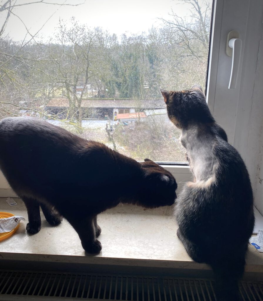 Und auch Pummelchen und Karlchen nahmen wir auf, weil ihr Herrchen verstorben ist. Die beiden sind sechs und sieben Jahre alt, kannten bislang Freigang und tun sich schwer mit der neuen Situation.