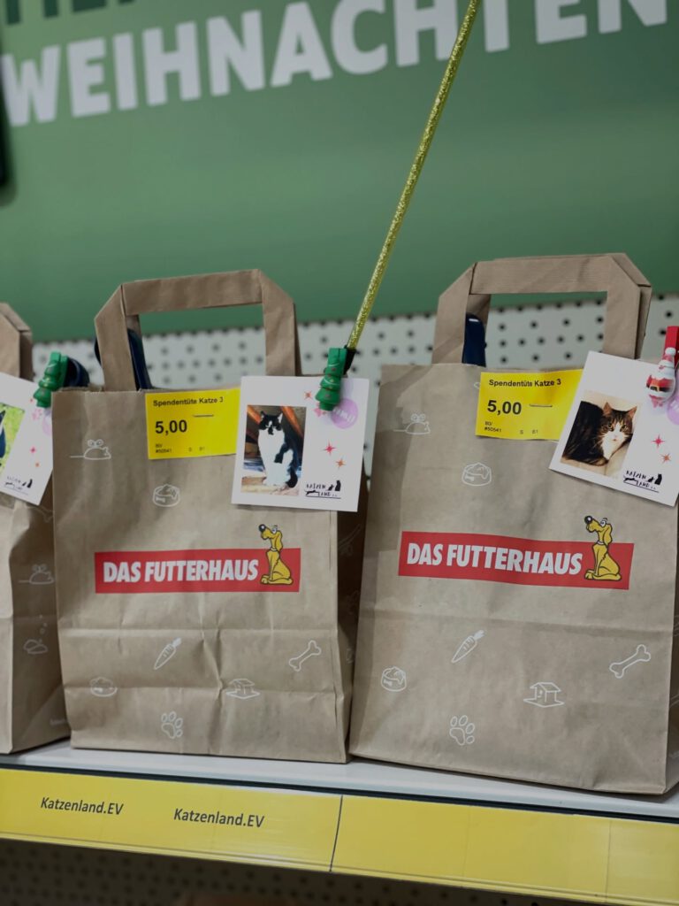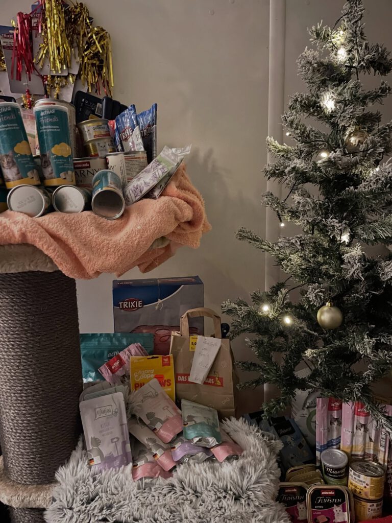 Zusätzlich durften wir uns über eine großartige Aktion von DAS FUTTERHAUS freuen, bei der zahlreiche Kundinnen und Kunden kleine Weihnachtsgeschenke für unsere Katzen gespendet haben. 🎅🐾