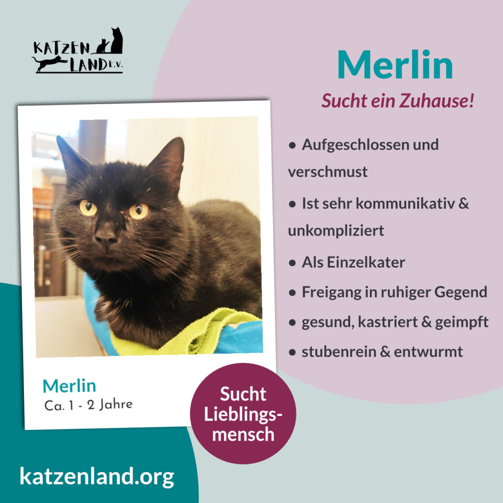Merlin ist ein absoluter Traumkater: sehr menschenbezogen, verschmust und anhänglich. Er kommt auf seine Menschen zu, „spricht“ mit ihnen, freut sich über Streicheleinheiten und kommt auch gerne auf den Schoß. Mit anderen Katzen versteht sich Merlin leider nicht, deshalb sucht er ein Zuhause als Einzelprinz. Für ihn wünschen wir uns ein liebevolles Zuhause ohne andere Tiere, mit Freigang in ruhiger Gegend. Wer schenkt Merlin sein eigenes Reich? 💛