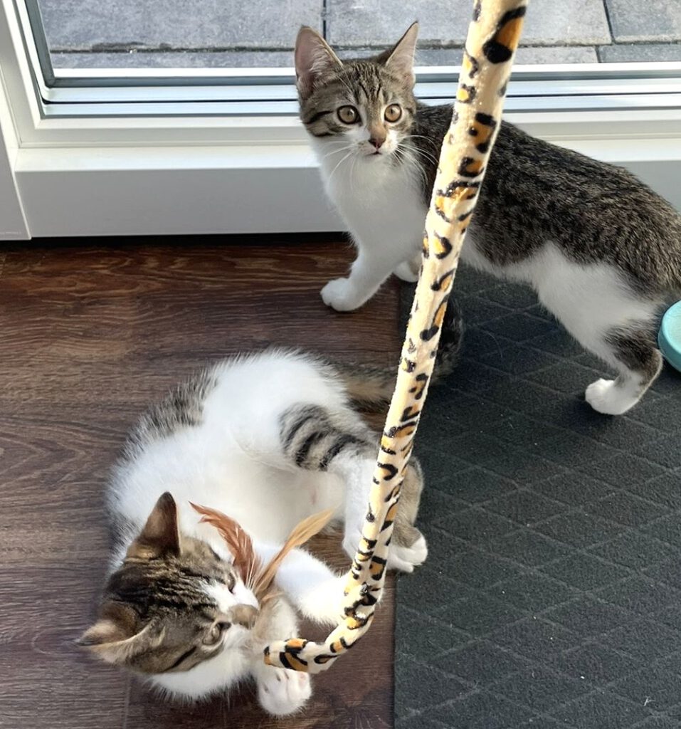 In ihrer Pflegestelle war von nun an immer etwas los. Tiger und Fussel tobten durch die Räume, spielten voller Freude und stellten mit ihrer neugierigen Art so einiges auf den Kopf.