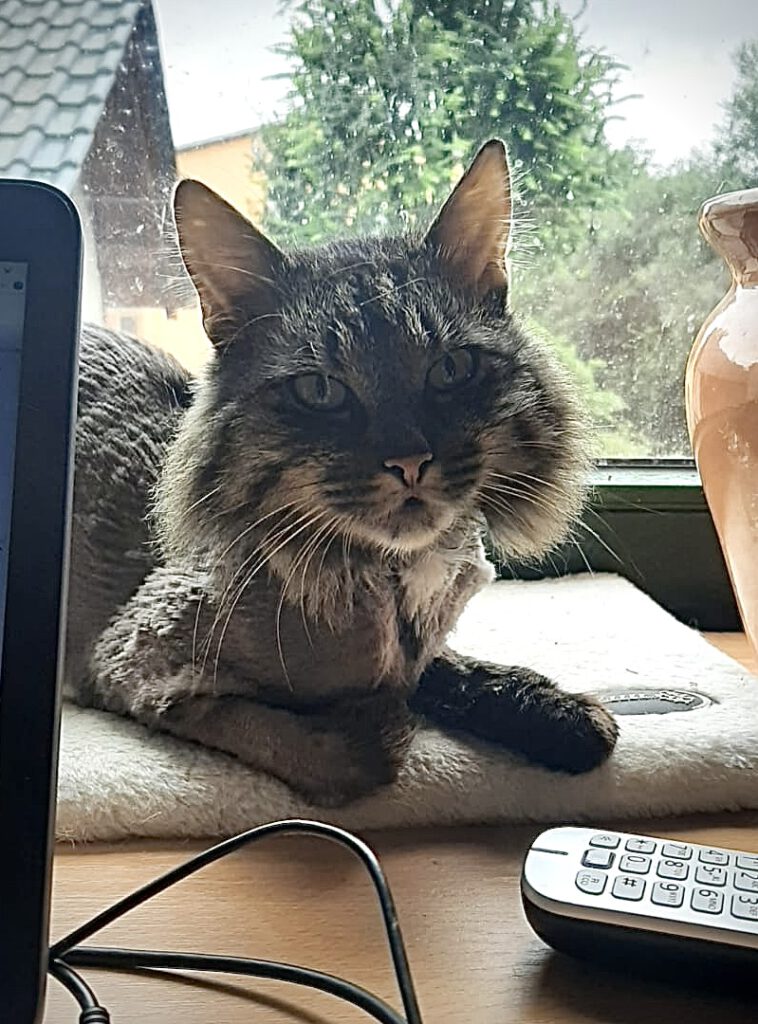 Im Juli 2024 bin ich nämlich aus dem Katzenland ausgezogen. Mein Frauchen hat mich abgeholt und hierher gebracht.